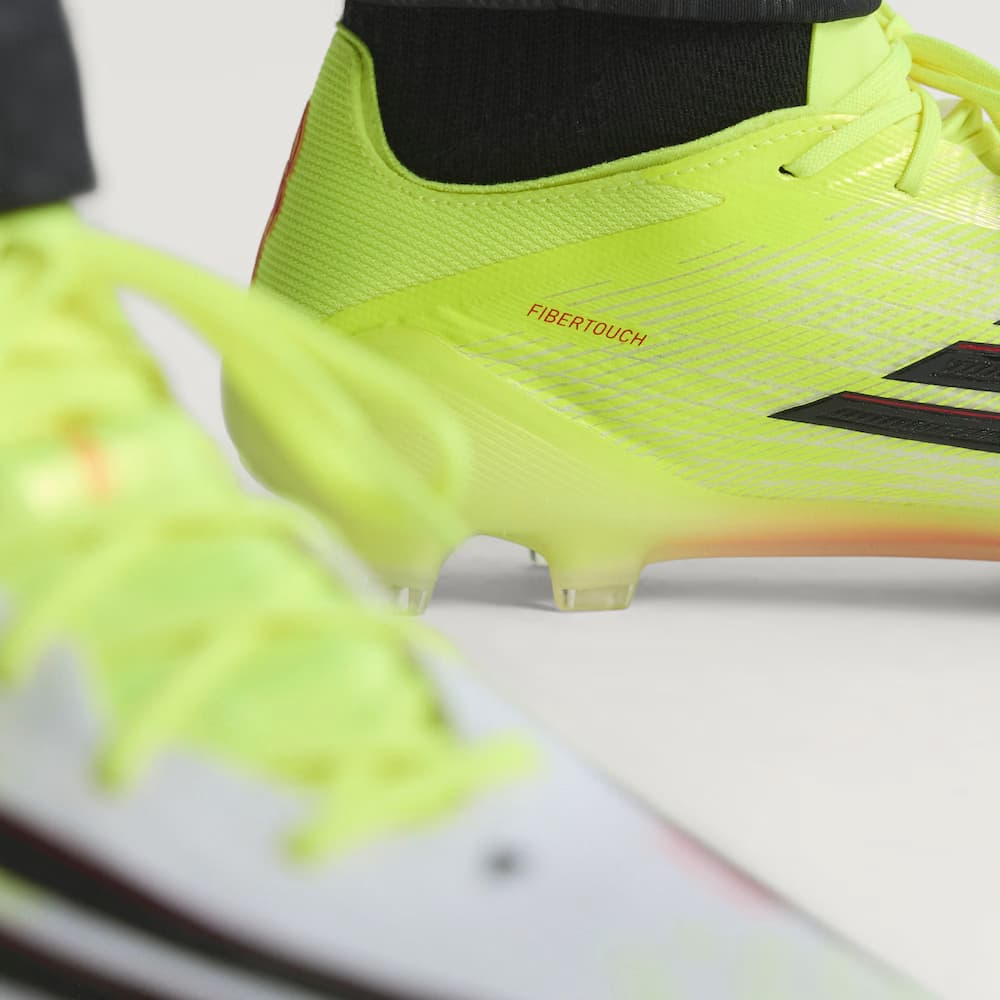 La chaussure de football F50 Elite Terrain souple est faite pour la rapidité sur le terrain. Avec un graphisme tendance sur la tige et une ingénierie de précision, elle offre le mix parfait entre style et performance. La tige Fibertouch présente un mix de matériaux techniques procurant un maintien supérieur et une sensation de douceur avec des lignes en 3D placées aux endroits stratégiques. La technologie Sprintweb présente une texture en 3D haute définition pour un meilleur contact avec le ballon, en particulier lors des dribbles à grande vitesse. La languette Compression Fit Tunnel s’adapte à ton pied, avec des renforts en TPU placés aux endroits stratégiques pour une meilleure expérience d’ajustement et de maintien. La semelle extérieure Sprintframe 360, avec sa structure anatomique renforçant la rigidité du médio-pied et une combinaison de crampons à lame et semi-coniques, offre une accélération et une vitesse supérieures dans toutes les directions. 3 bandes imprimées adidas et un logo F50 complètent le look. Alliant fonctionnalité et style, cette chaussure de football est une addition smart à ton équipement.