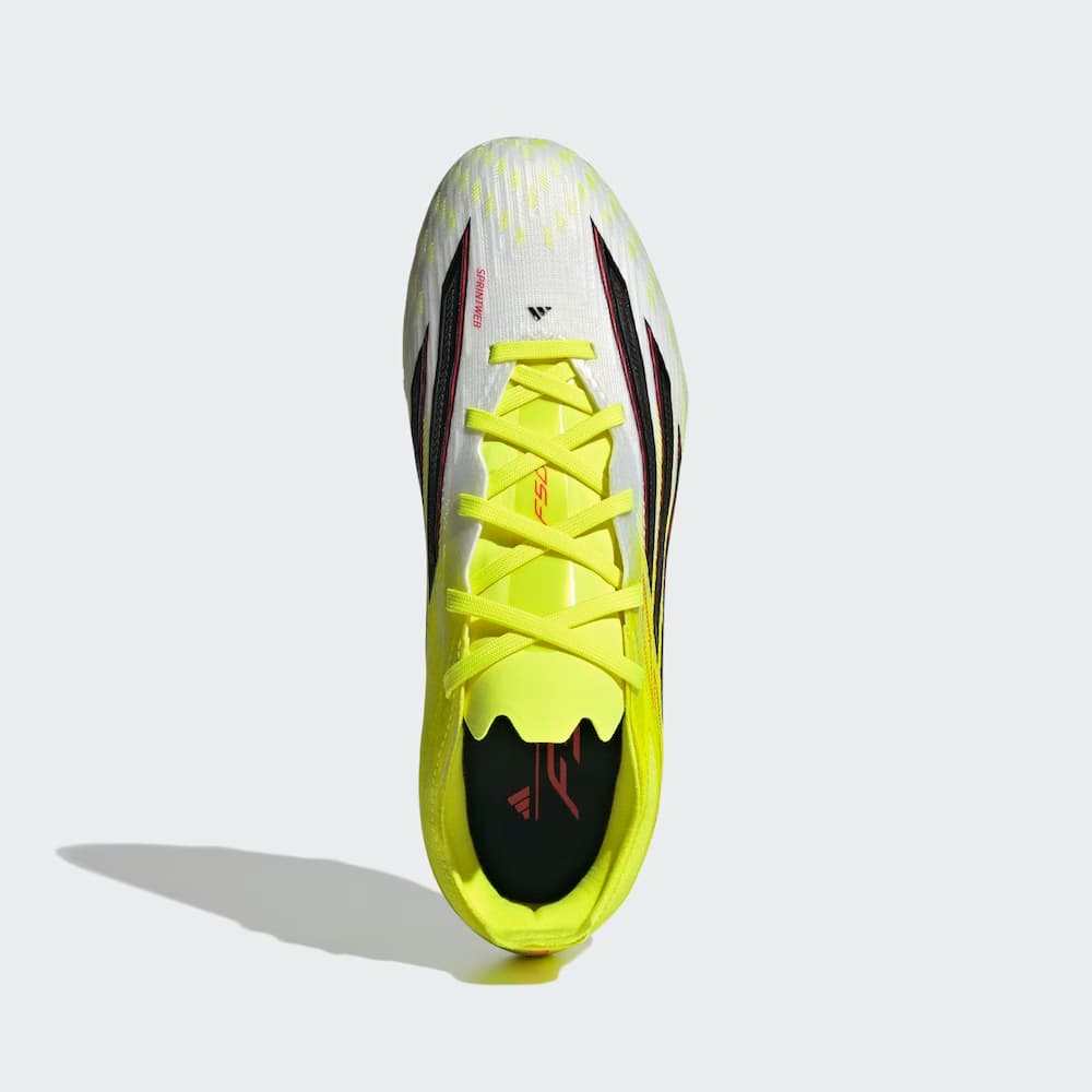 Découvrez les chaussures de football F50 Elite pour terrain ferme. Conçues pour les jeunes footballeurs prêts à briller sur le terrain, elles sont idéales pour les sprints fulgurants et les changements de direction rapides. L’empeigne Fibertouch offre maintien et amorti ciblés, tandis que la texture 3D haute définition Sprintweb assure un contact optimal avec le ballon, notamment lors des dribbles à grande vitesse, donnant ainsi à votre enfant un avantage certain sur ses adversaires. La semelle extérieure Sprintplate 360, dotée de crampons lamellaires et semi-coniques non amovibles, garantit vitesse, agilité et une adhérence optimale sur terrain ferme, comme le gazon naturel sec. La languette tunnel à compression est légère et adaptable, avec des renforts en TPU pour un maintien sûr et un verrouillage optimal. Encouragez votre enfant à se surpasser avec ces chaussures arborant le logo emblématique d’adidas. Faites confiance à des chaussures performantes qui inspirent confiance et accompagnent la prochaine génération d’athlètes.