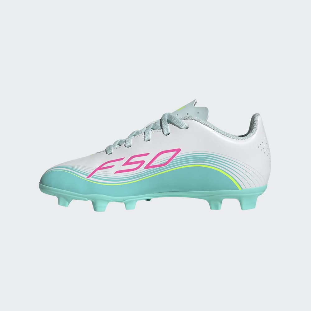 Découvrez une vitesse révolutionnaire avec les chaussures de football F50 Messi Club pour enfants, conçues pour terrains naturels et synthétiques. Adaptées aux préférences de Messi, ces chaussures sont pensées pour les joueurs exigeants en matière de vitesse et d’agilité. Dotées d’une languette synthétique légère et perforée pour une meilleure aération et d’une tige synthétique souple offrant un maintien optimal, elles assurent un laçage sûr. Idéales pour les jeunes joueurs prêts à conquérir tous les terrains en toute confiance.