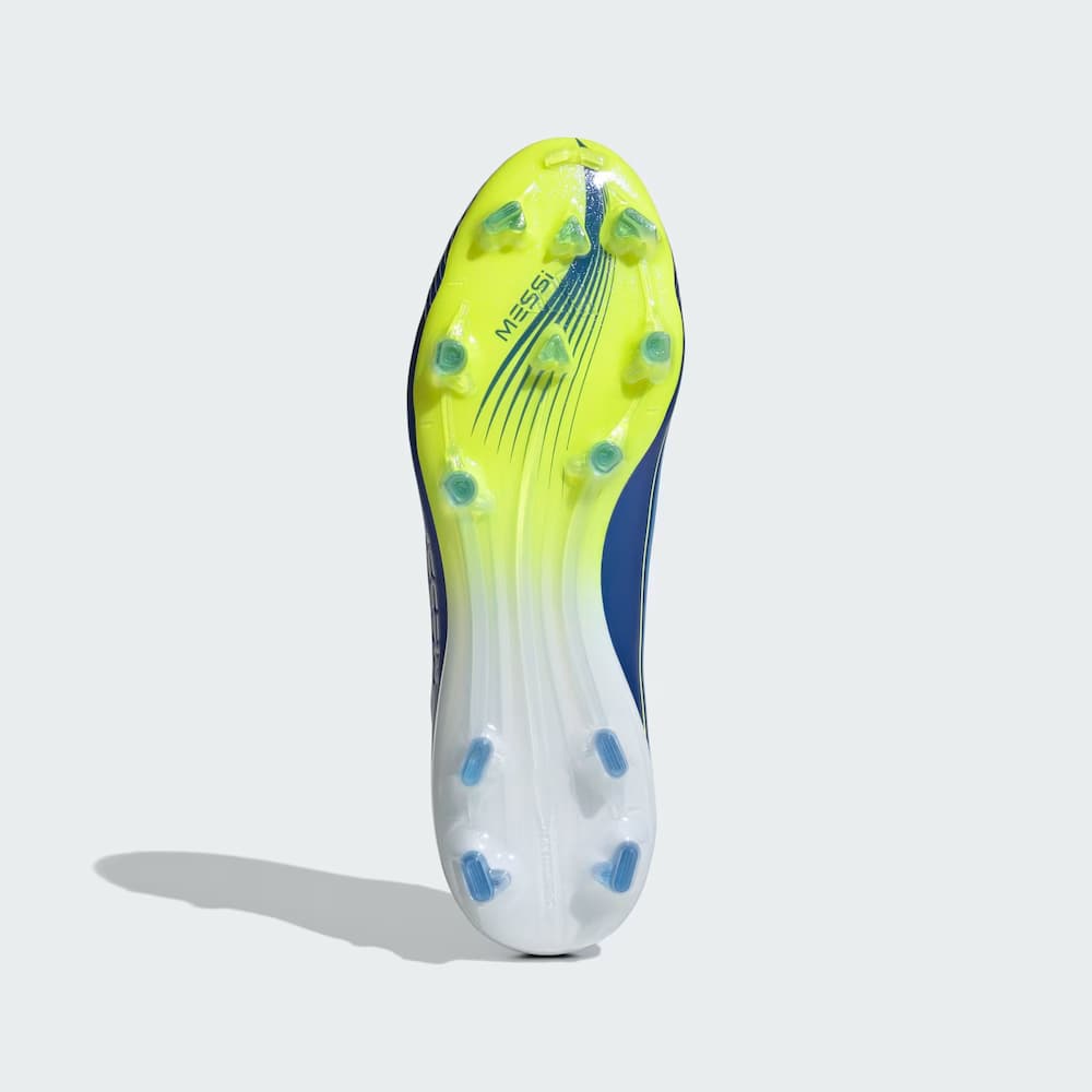 Conçues pour la vitesse, taillées pour Lionel Messi, ces chaussures de football adidas Pro font partie d’une collection conçue pour répondre aux exigences du GOAT sur le terrain. Offrant un toucher cuir, leur tige flexible HybridTouch est dotée d’une languette tricotée « burrito » pour une ouverture plus large et un ajustement confortable. La semelle extérieure Sprintshell 360 est conçue pour une foulée rapide sur gazon sec.