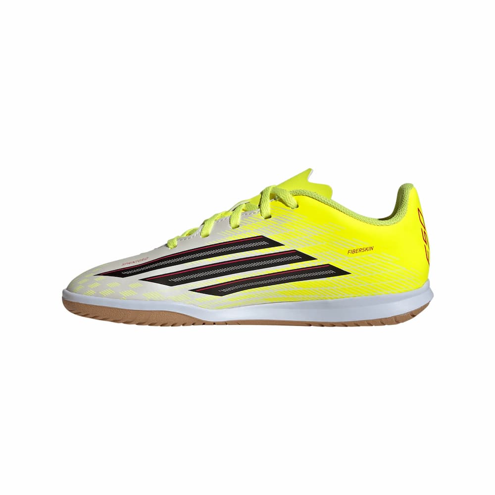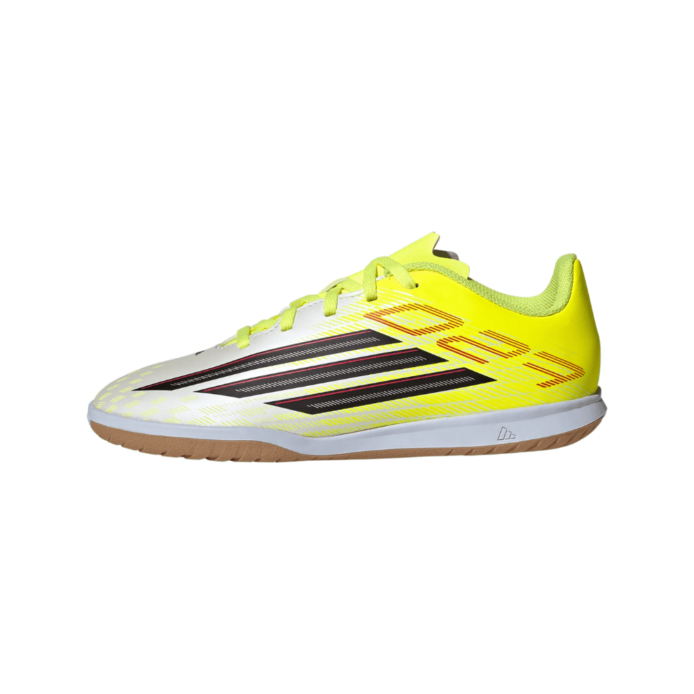 Pensées pour les jeunes joueurs ambitieux, les chaussures de football en salle F50 Club combinent style et efficacité. Légères et modernes, elles offrent une grande liberté de mouvement pour exprimer pleinement son jeu. La languette perforée favorise une bonne circulation de l’air afin de garder les pieds au frais pendant l’effort. Leur semelle extérieure en caoutchouc non marquante assure une excellente adhérence et une stabilité optimale sur les surfaces indoor. Grâce à un laçage sûr, le maintien est au rendez-vous pour rester concentré du coup d’envoi au coup de sifflet final. Fidèles au savoir-faire adidas, ces chaussures accompagnent chaque jeune athlète dans un mode de vie actif et passionné.