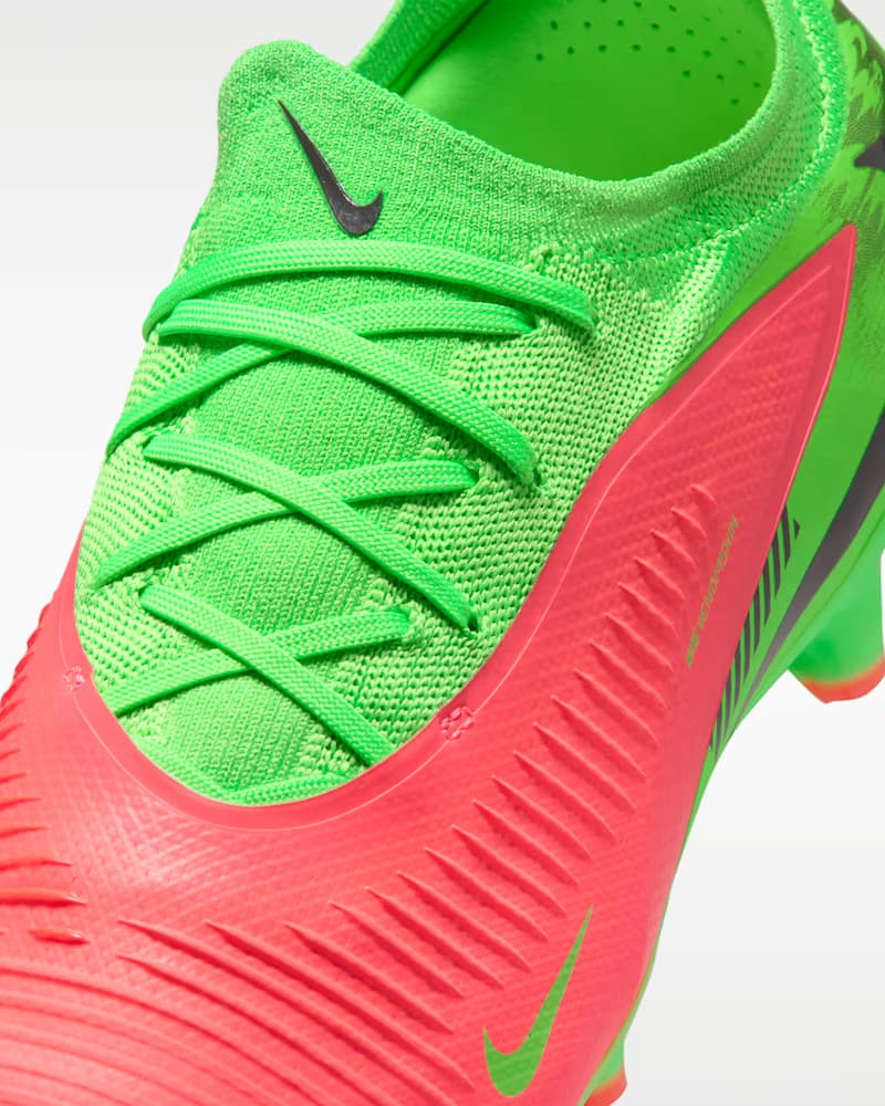 Inspirée par la détermination d’Erling Haaland qui alimente ses buts décisifs, cette Phantom 6 Pro vous aide à transformer les occasions manquées en réussites. Elle optimise votre précision grâce aux matériaux VNMSkin et Flyknit qui offrent une adhérence exceptionnelle et vous rapprochent du ballon pour des frappes nettes et une précision hors pair.